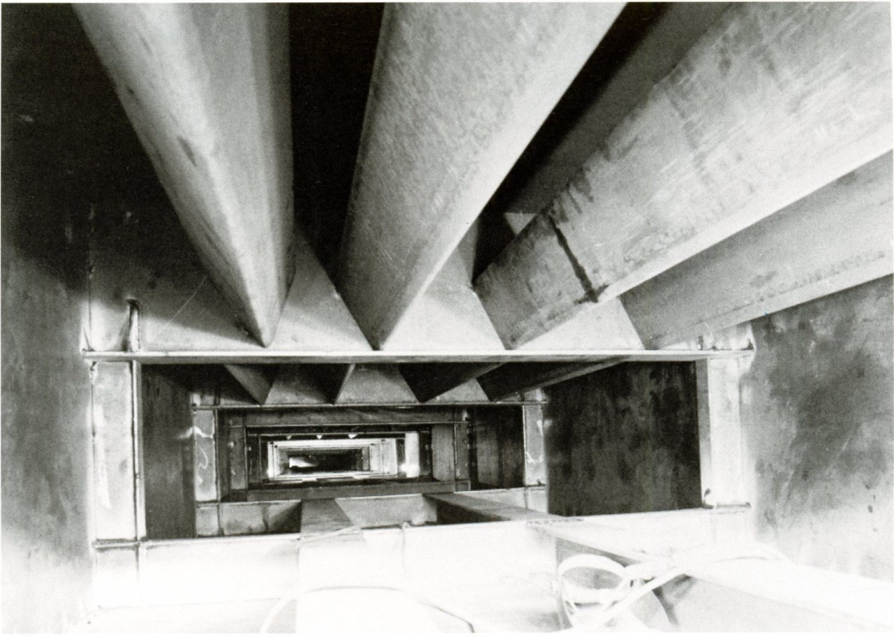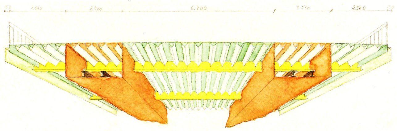 Las vigas estaban unidas por una losa de chapa ortótropa rigidizada longitudinalmente mediante nervios en uve (imagen: “Los puentes del Guadalquivir en Sevilla” .