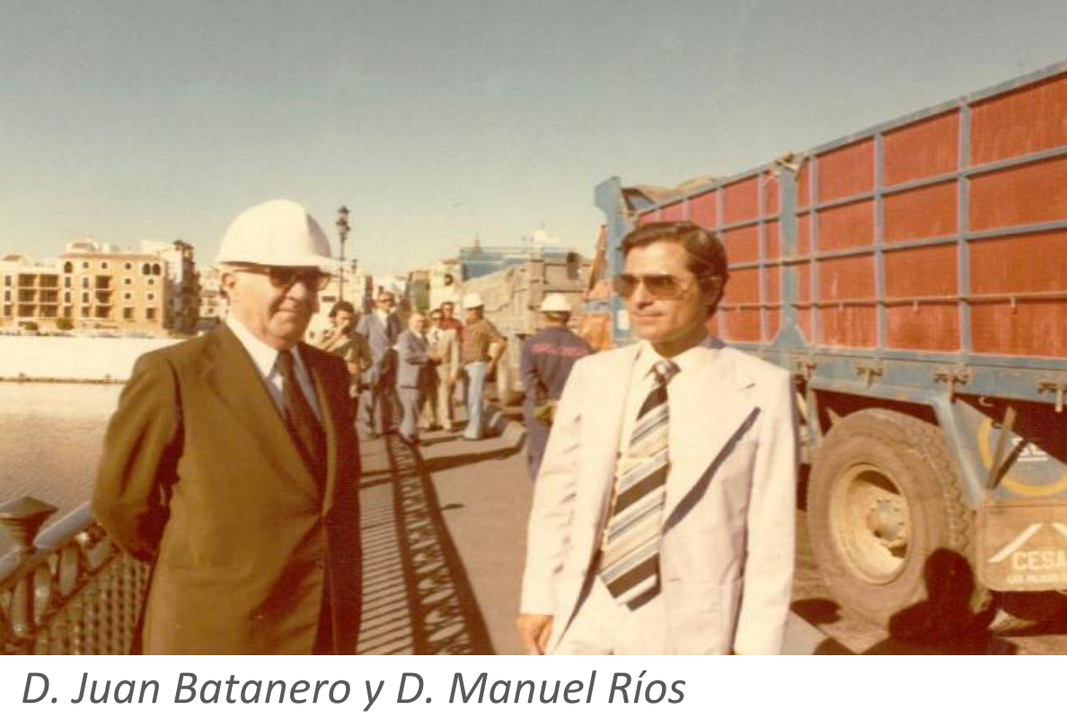 Llegados a este punto, es imprescindible mencionar a Manuel Ríos Pérez, entonces ingeniero de la Jefatura Regional de Carreteras, a quién se encomendó la dirección de las obras y que tuvo un papel destacado en la decisión de preservar el puente.
