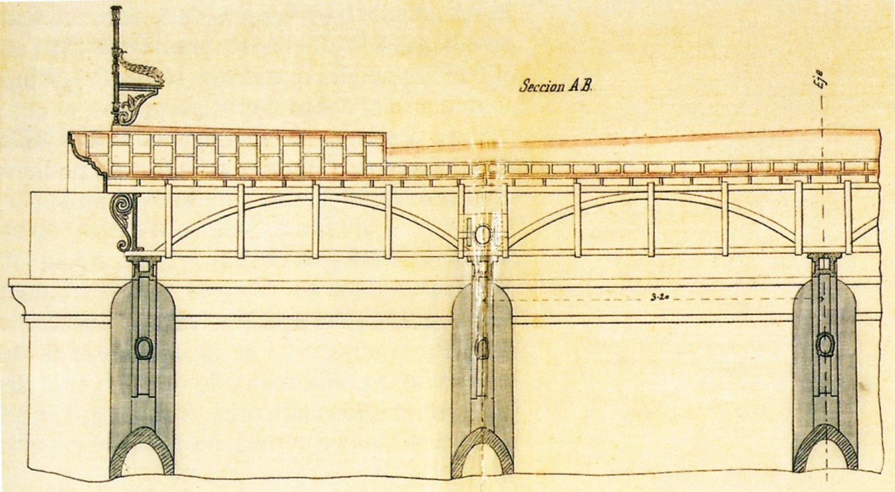 Hubo problemas y en 1851 se nombra director al ingeniero español Canuto Corroza quien logra finalizar las obras a comienzos de 1852. Es el segundo puente de hierro español, tras el de Bilbao (1844-1848) y fue fundido por Narciso Bonaplata en Sevilla.