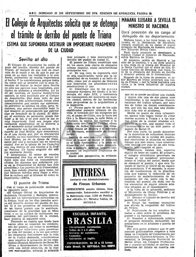 La fase final de la polémica pública se vivió en septiembre y octubre de 1974. El detonante fue el posicionamiento del Colegio de Arquitectos de Sevilla. Lo sé: puede sorprender hoy a quienes no vivieron la transición política.